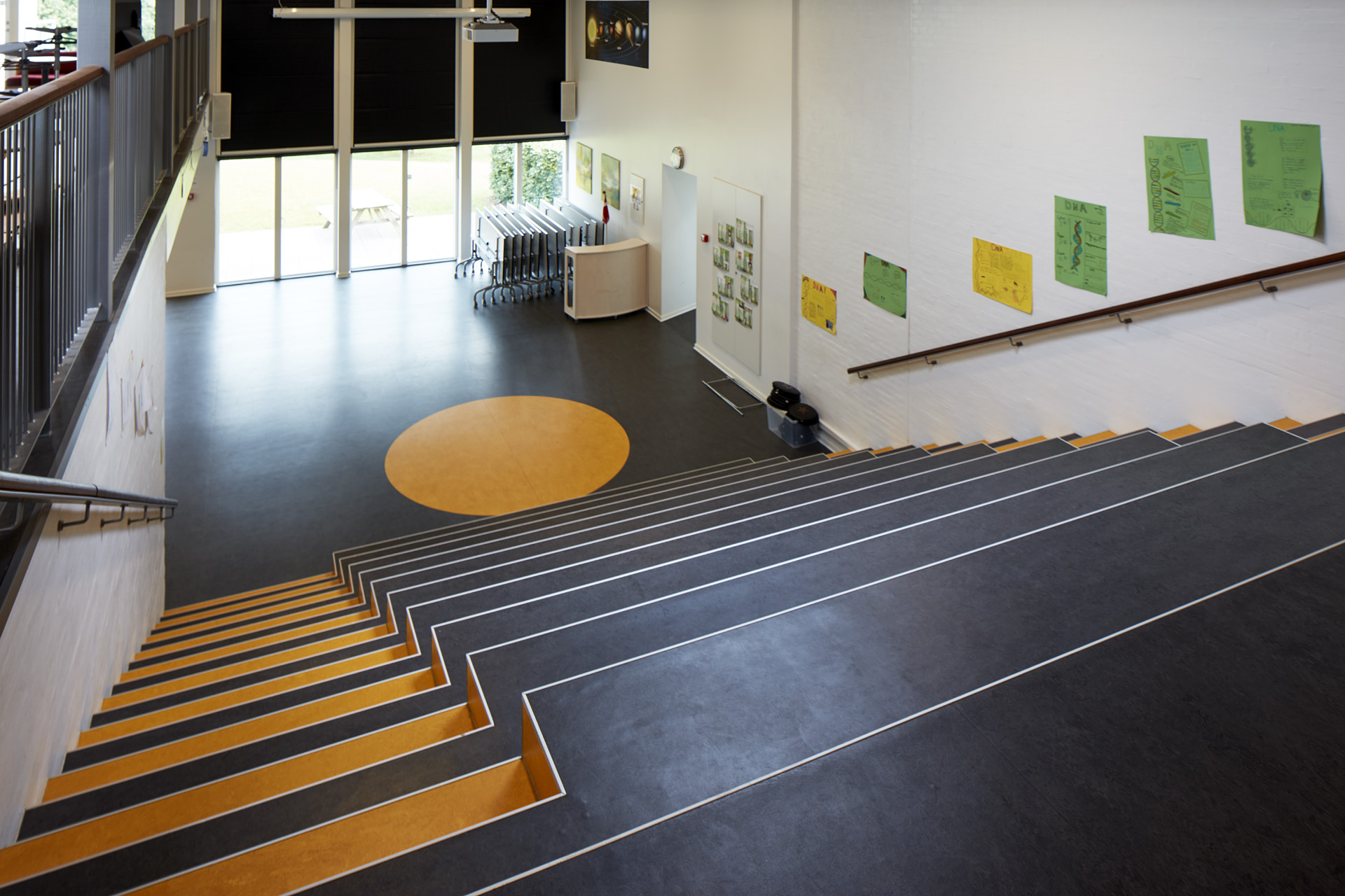 fra vidt forskelligt fodtøj. Samtidig er området de daglige rammer for både børn og voksne. Det kræver mere end blot grå, ensartede gulve. Smukke, raffinerede,