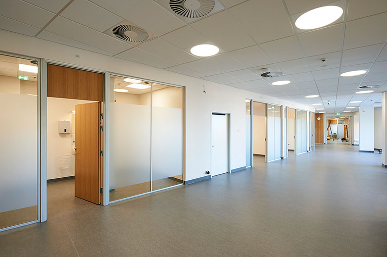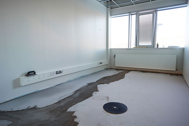 Gulvbelægningen skal derfor være tilpasset på en måde, så det udover at give god gangkomfort og reducere støj også har bakteriostatiske og antistatiske